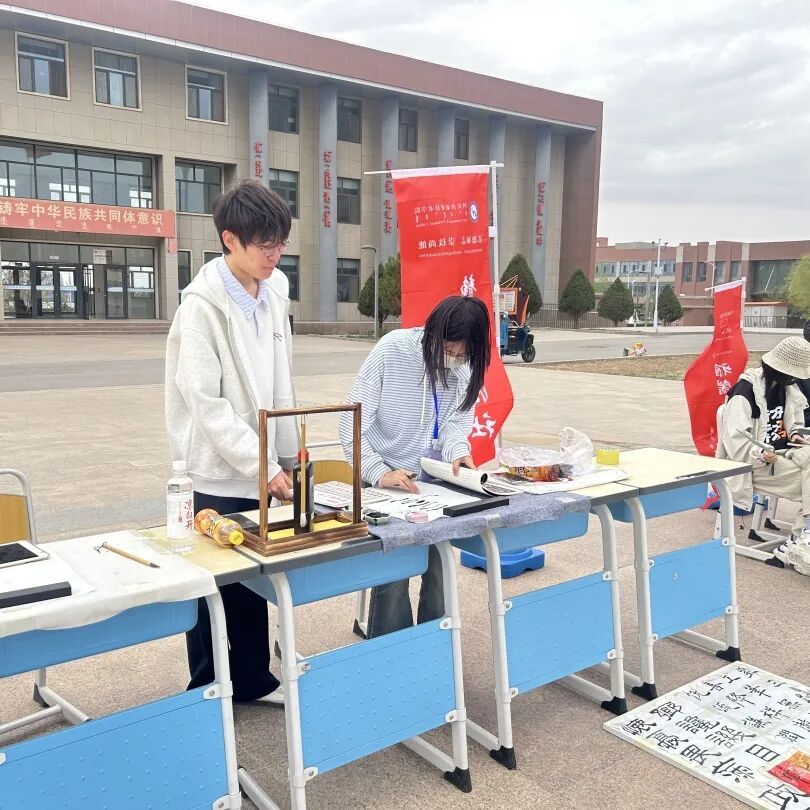 随着我院全民终身学习活动周与第三届校园文化艺术节正式启动,4月15日,我院2026年社团集中纳新活动在巴彦浩特校区火热开展。本次纳新涵盖文化、艺术、体育、科技等多个领域,24个学生社团齐聚一堂,带来精彩纷呈的展示,其中漆扇体验活动更成为现场人气焦点,吸引众多师生驻足参与。
